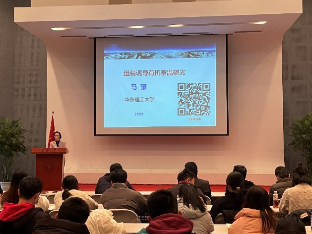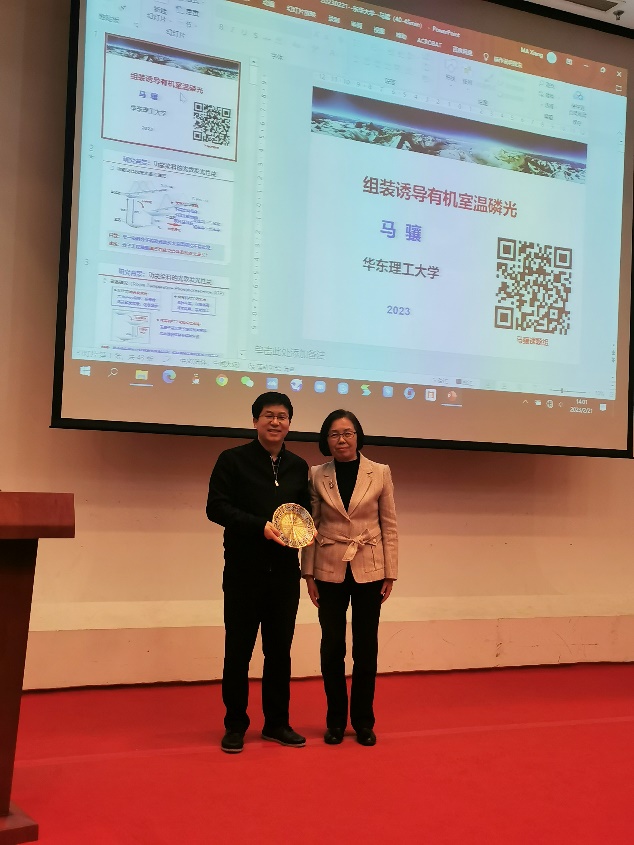 在学术报告环节,马骧教授做了题为《组装诱导有机室温磷光》的精彩报告。报告中,介绍了采用“组装诱导发光”的策略,对功能染料的荧光发射波长和室温磷光发光效率的有效的调控,构建了功能广泛和可智能调控的功能染料产品体系,有效拓展了传统有机功能染料的新功能和新应用。现场学术氛围浓厚,互动热烈,各种精彩问答,交流效果良好。
